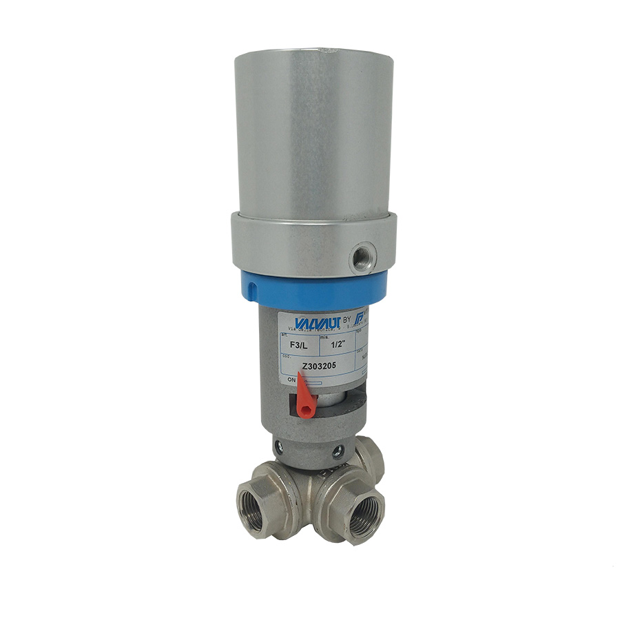 3-way ball valve with rotary pneumatic actuator.