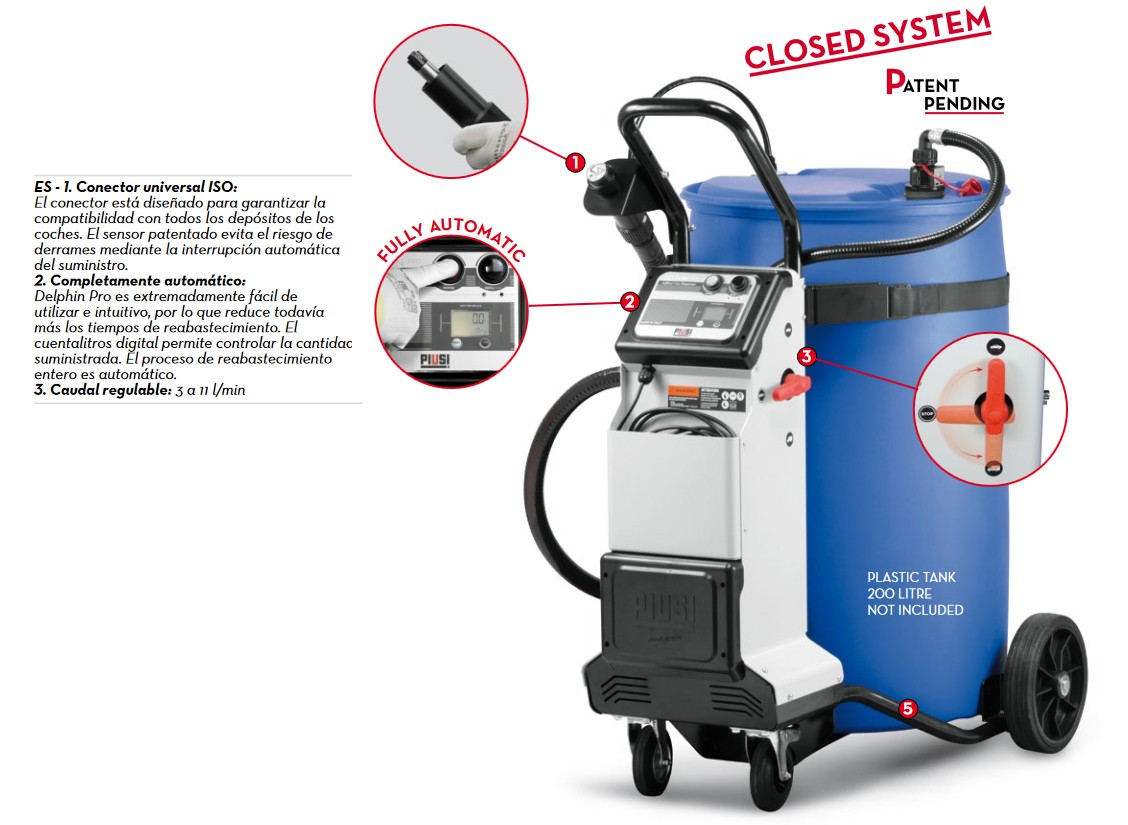 Thanks to ten years of industry experience and following significant studies, PIUSI has created the Delphin Pro_X, which makes AdBlue® filling completely automatic. Through this achievement, PIUSI maintains its legacy as a leader in the AdBlue® industry. The new AdBlue® dispensing system suits the needs of workshops, as it is easy to transport and dispenses AdBlue® safely into vehicles’ tanks.