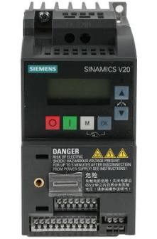 SINAMICS V20 200-240 V 1-phase-AC -10/+10 Rated power 0.75/1 PS with 150% overload for 60 sec. unfiltered I/O interface: 4 DI, 2 DQ, 2 AI, 1 AO Fieldbus: USS/Modbus RTU with built-in BOP Degree of protection IP20/UL open Size: Size AB 68x142x128 (Wx